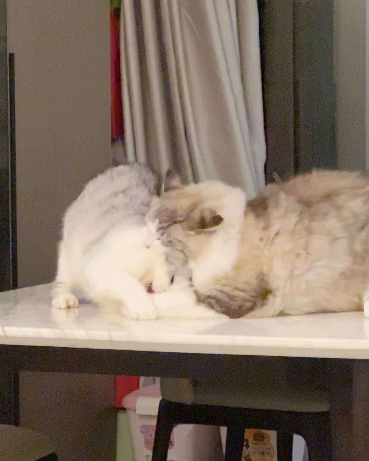 地位高的才能给地位低的顺毛,所以泡饭不能给泡芙顺毛不然泡芙就会大不悦#喵趣横生#