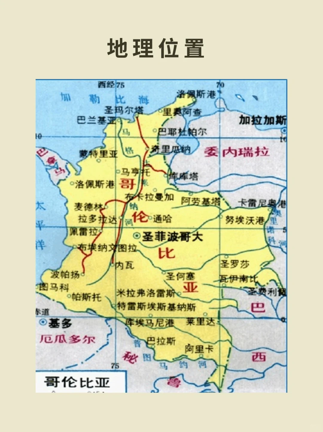 哥伦比亚位于南美洲的北部,与巴拿马、委内瑞拉、巴西、秘鲁和厄瓜多尔等国家接壤。