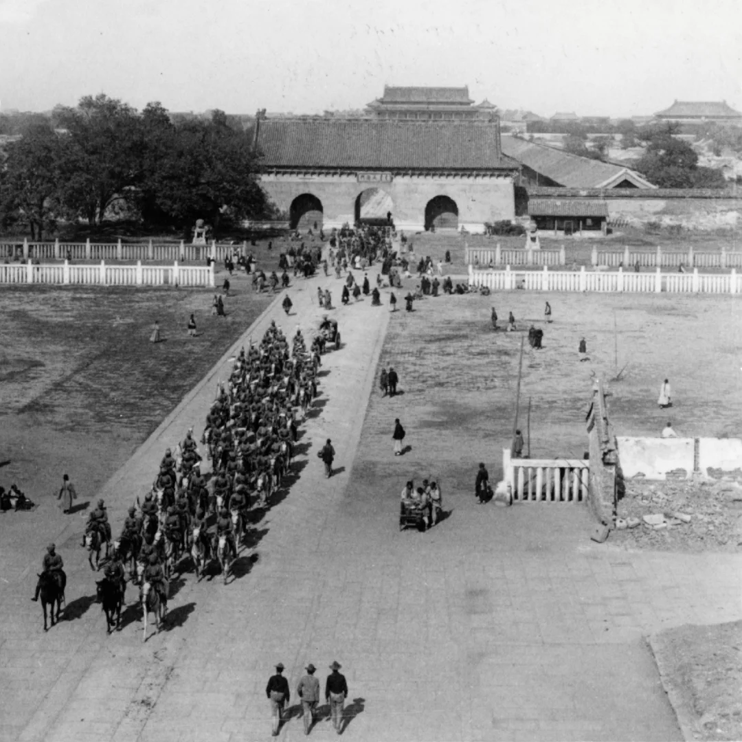 🍀图5、1900年八国联军英军中由华人组成的“华勇营”士兵携装备进入大清门;