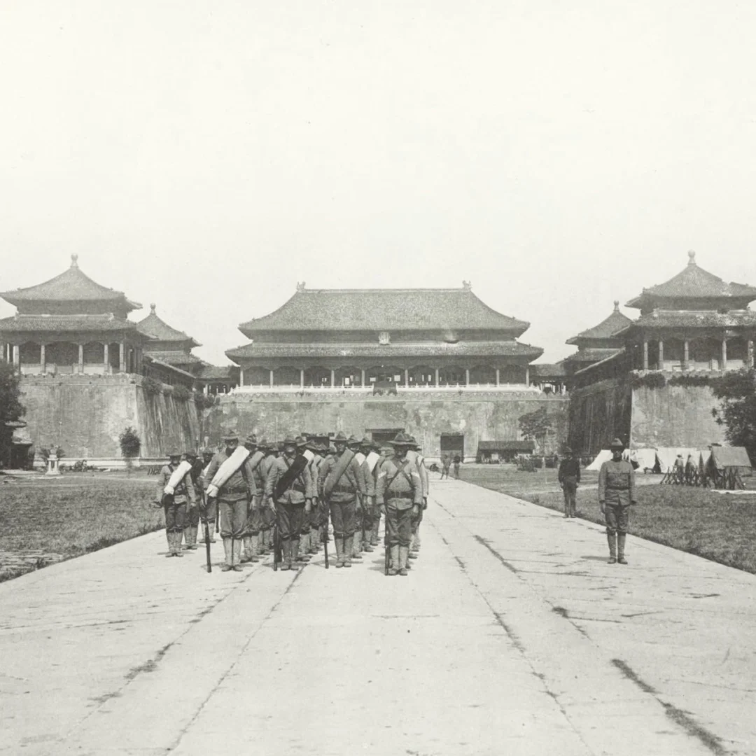 🍀图7、1900年八国联军在紫禁城午门前列队;
