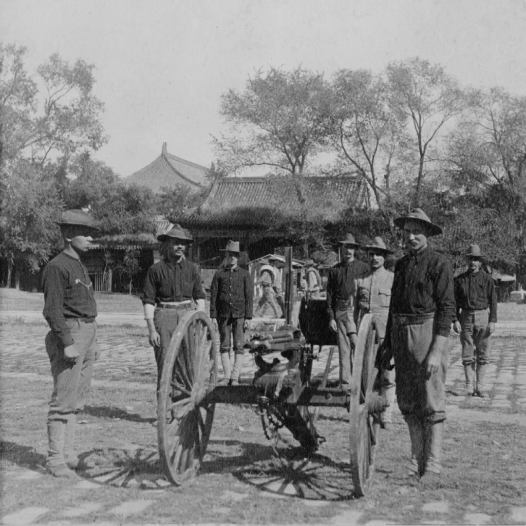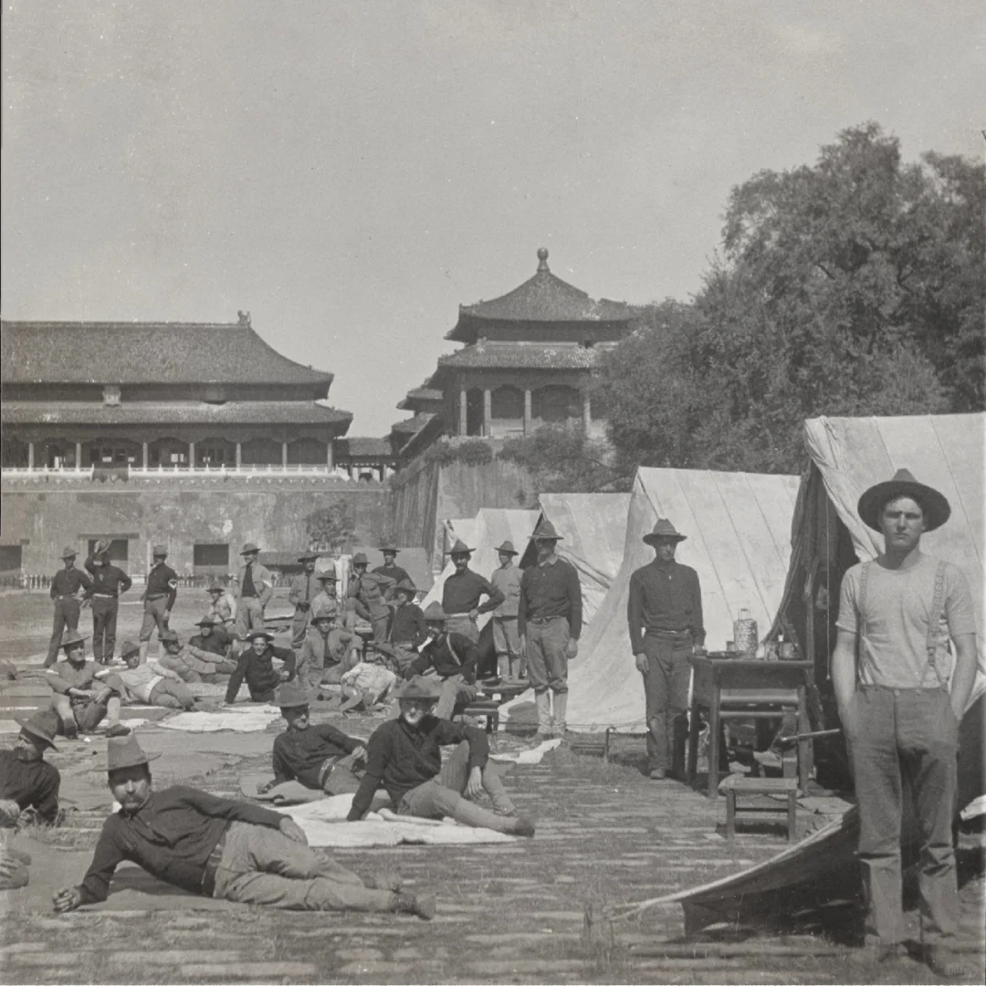🍀图10、1900年美军第九加特林机枪分队驻扎在紫禁城中;