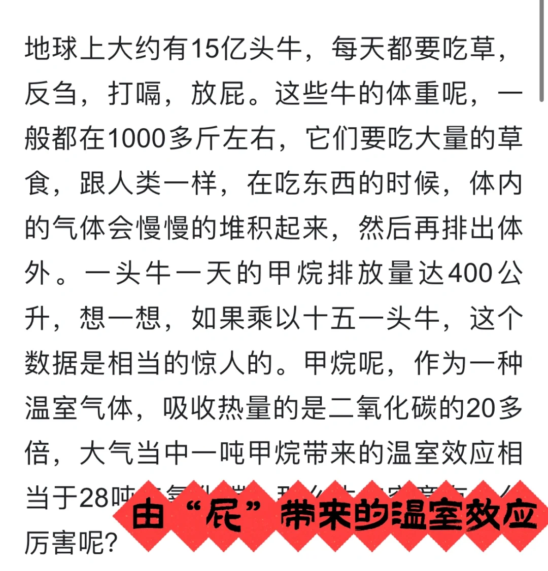 [集美R]科普:其实还有一种温室气体,叫甲烷,也就是我们平时用的天然气,它也是我们放的屁主要成分之一。