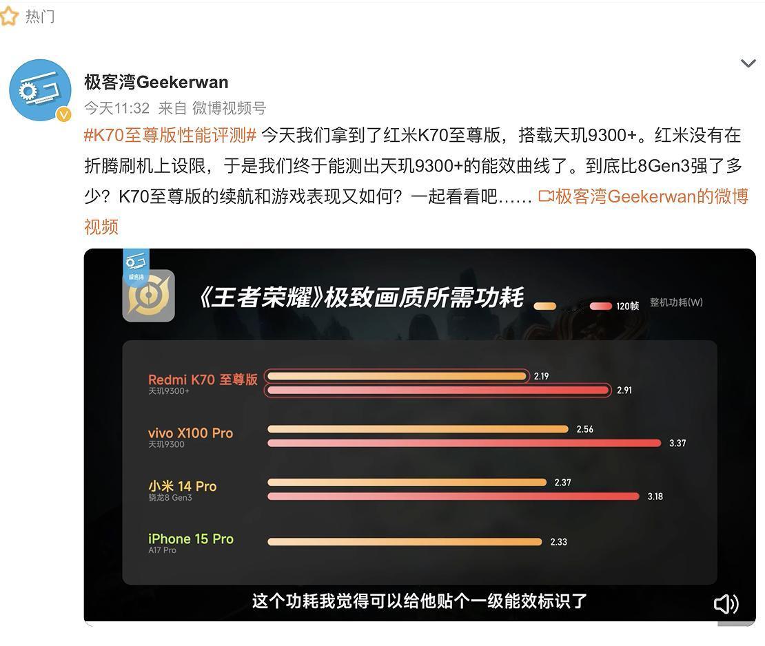 美国万万没有想到,按下葫芦浮起瓢,好不容易按住华为这个东方巨龙,中国市场又出现一个更厉害的企业。甚至连美国科技巨头掌门人库克也开始始料未及,原来华为的回归只是“开胃菜”,这个中企的强势崛起才是“难啃的骨头”。 就拿智能手机行业来说,在华为遭到美西方打压后,外界曾普遍认为苹果将会成为最大的受益者。但关键时刻,小米站了出来,通过持续的研发投入与创新,正面与苹果硬刚,而且做到了连续9个季度跻身全球销量前三。如今小米不仅成功站稳了高端手机市场,在中低端领域也同样有着出色的表现。 就在今天,Redmi K70至尊版正式宣布定档本月发布,并且提前公布了性能测试结果,这瞬间引发了业界的广泛关注。根据媒体公布的结果显示,这款搭载天玑9300+处理器的新机,安兔兔跑分轻松达到了238万,一跃成为国产性能旗舰的第一名,甚至轻松打败了骁龙8Gen3处理器,打破了这家美国企业在高端处理器市场的垄断地位。 Redmi K70至尊版的性能表现不仅仅停留在纸面参数上,从博主测试数据来看,这款手机在主流游戏中都能做到稳帧运行,特别是《原神》游戏表现非常亮眼,超越了几乎所有友商旗舰。这一表现无疑让消费者对Redmi K70至尊版的游戏性能充满了期待。 如此亮眼的游戏表现,得益于Redmi K70至尊版搭载的全新独显芯片和更优秀的游戏算法。这些技术使得手机在游戏场景中能够发挥出极致性能,为玩家带来更加流畅、稳定的游戏体验。另一方面,它还采用了新一代3D冰封循环冷泵系统,将散热系统与处理器完美贴合,加快内部导热循环,让游戏表现更加稳定。 除了强大的性能表现外,Redmi K70至尊版在外围规格方面也同样出色。它拥有5500毫安电池和120W快充,做到了快充与续航的平衡,解决了消费者的续航焦虑。同时,手机还采用了玻璃机身、金属中框以及同档位唯一的IP68防尘防水设计,如此全面的配置让Redmi K70至尊版在市场上更具竞争力。 当然,如此强大的配置和性能表现,也让外界对Redmi K70至尊版的价格有了更大胆的猜测。业内人士爆料称,这款手机的起售价为2799元。若果真如此,凭借其出色的性能和全面的配置,具有超高性价比的Redmi K70至尊版仍然会吸引大量消费者的青睐。