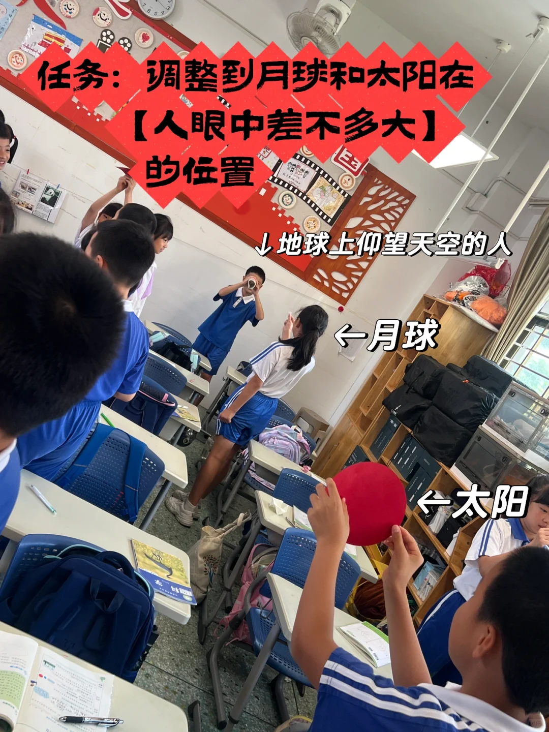 其实学生早就知道【近大远小】,还没做实验都能答出“太阳和月球看起来差不多大,因为太阳远月球近”,所以我认为这个实验的意义在于把【差异直观化】。
