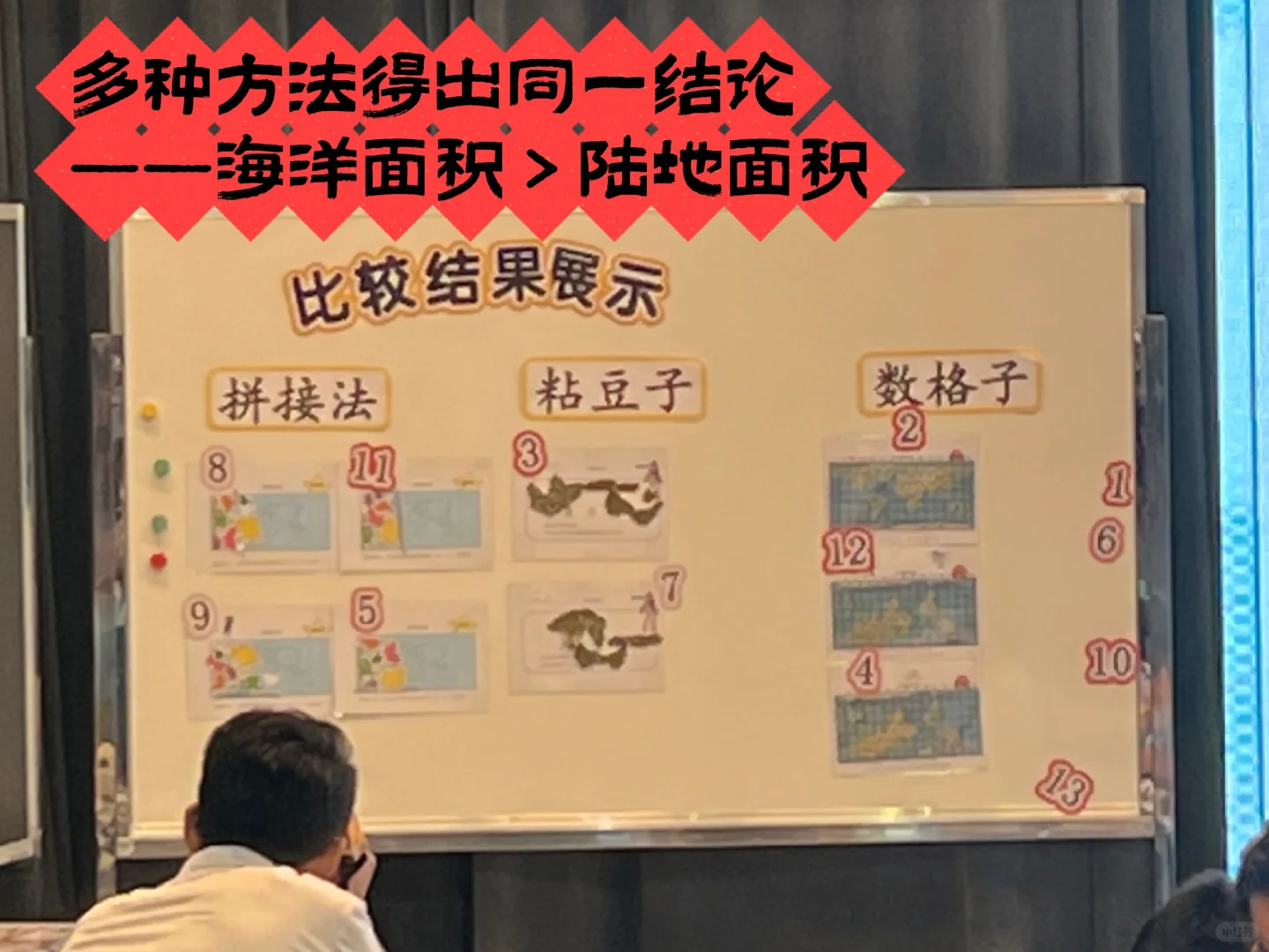 ✅✅在用方法一引入课堂后,由学生从方法二、三、四自选方法验证“海洋面积>陆地面积”