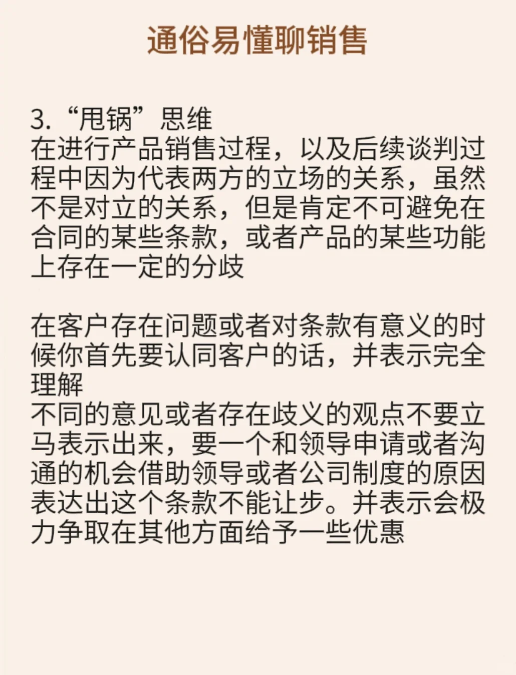 不同的意见或者存在歧义的观点不要立马表示出来,要一个和领导申请或者沟通的机会借助领导或者公司制度的原因表达出这个条款不能让步。并表示会极力争取在其他方面给予一些优惠