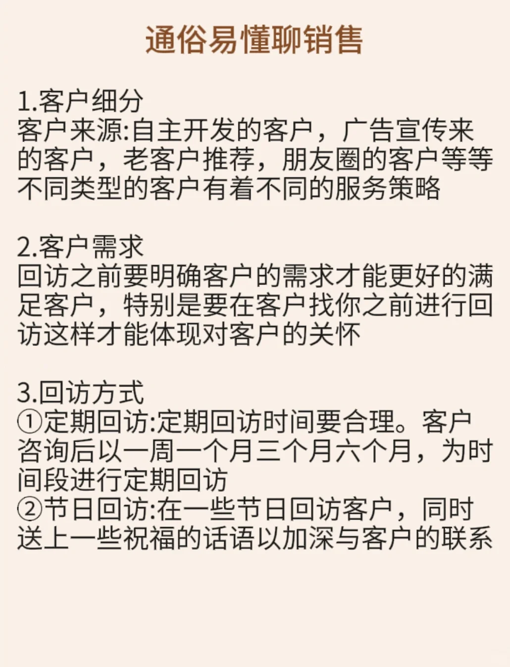 ②节日回访:在一些节日回访客户,同时送上一些祝福的话语以加深与客户的联系