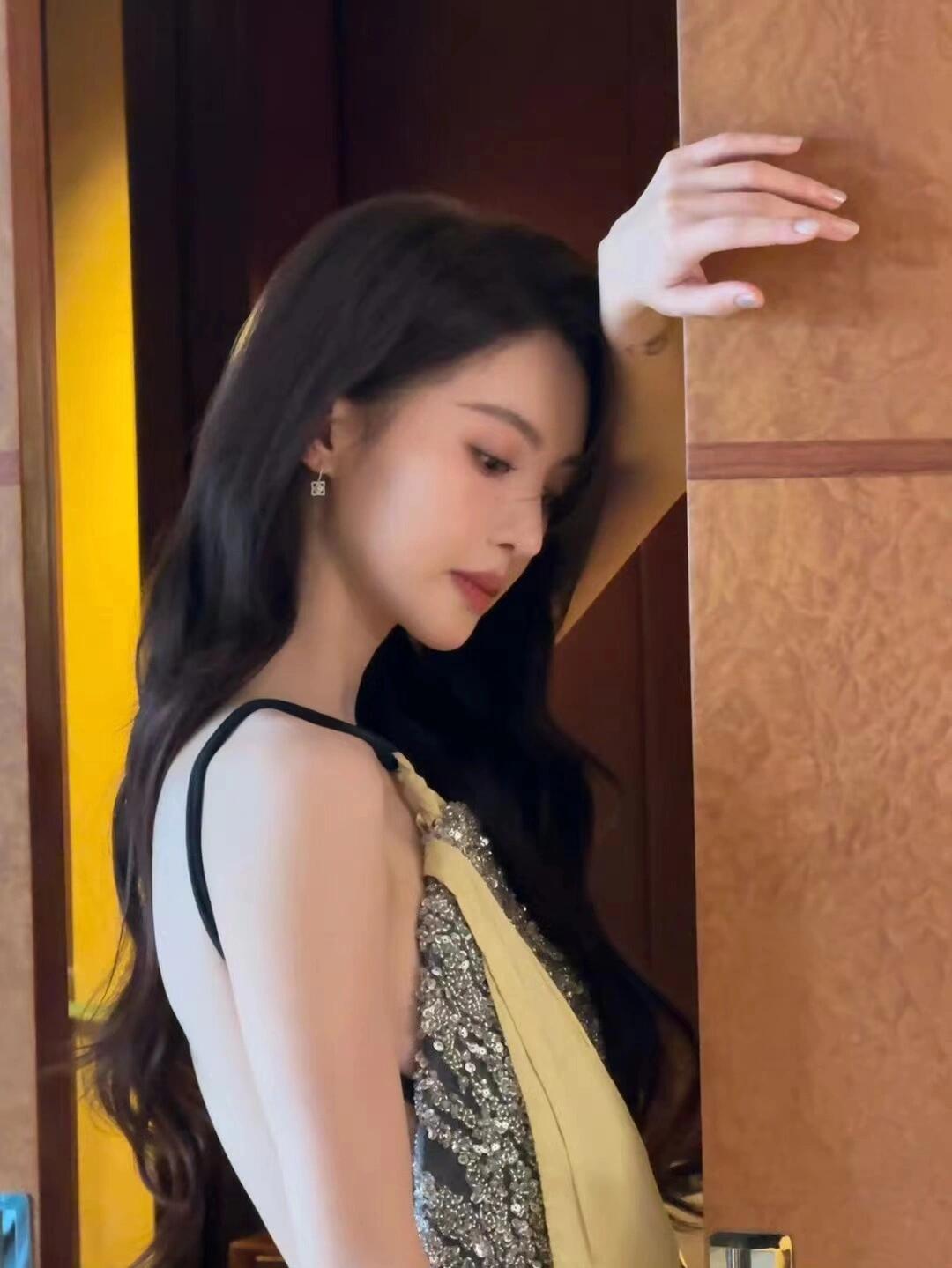 金晨身着一袭亮片裙,展现出优雅迷人的气质,让人眼前一亮。金晨背对着镜头,露出美背,曲线流畅,皮肤白皙,与亮片裙的闪耀效果相得益彰,充满了女性魅力。