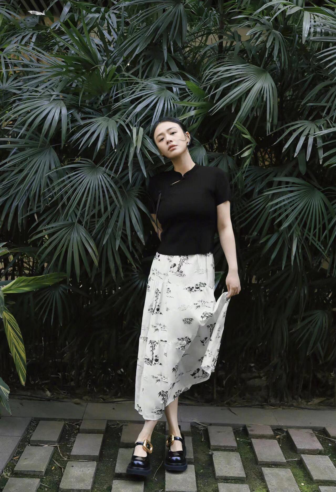 中式韵味不是谁都能hold住的,马思纯这水墨裙穿出了古典美人的味道,教程级穿搭啊