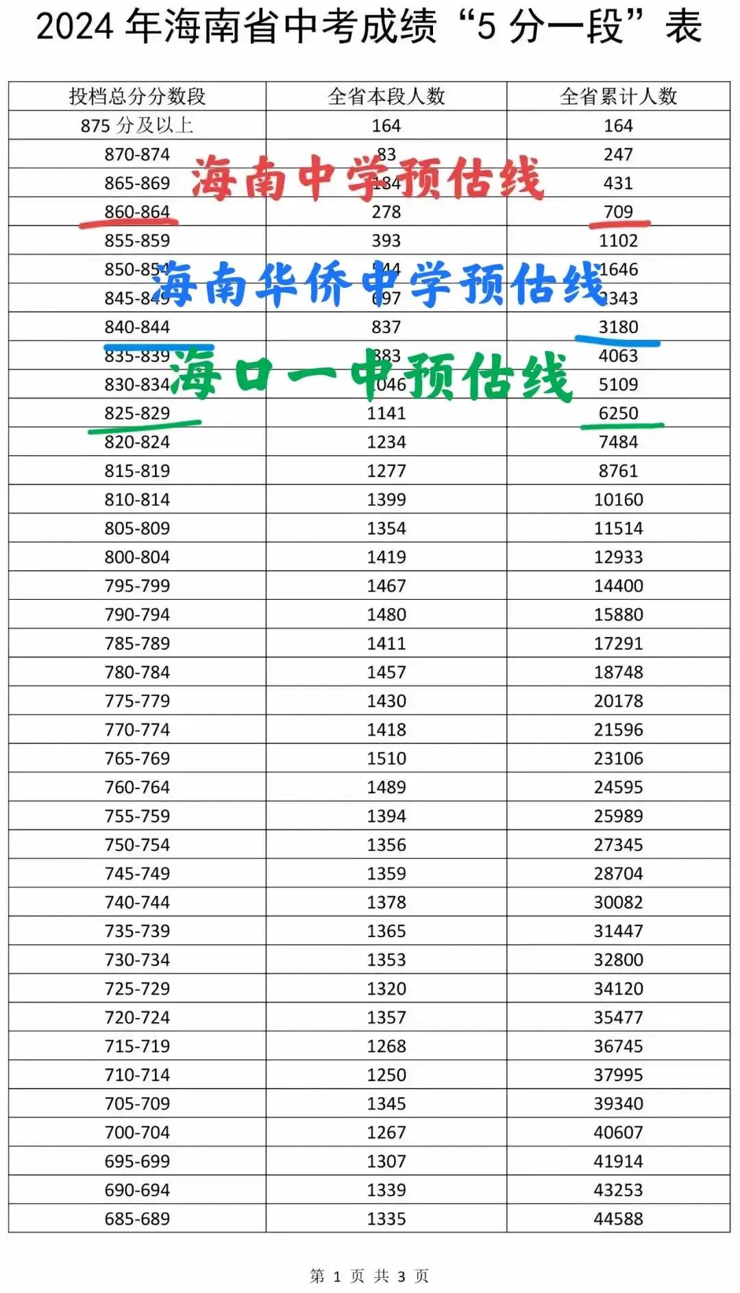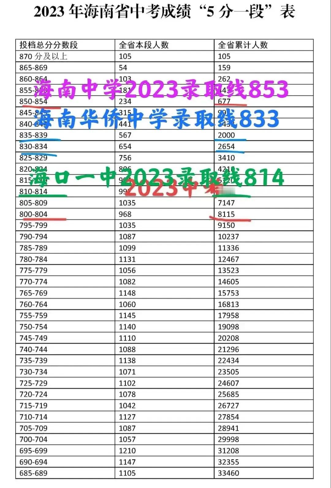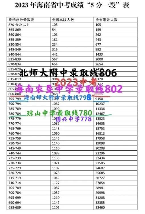 2024年海南中考(海口市)主要公办高中A段录取线(预估)! 海南中学(府城) 860左右 海南华侨中学 844左右 海口一中 828左右 北师大附中海口 824左右 海南农垦中学 818左右 海师附中 813左右 琼山中学 803左右 国兴中学 798左右 不构成报考建议,仅供参考!