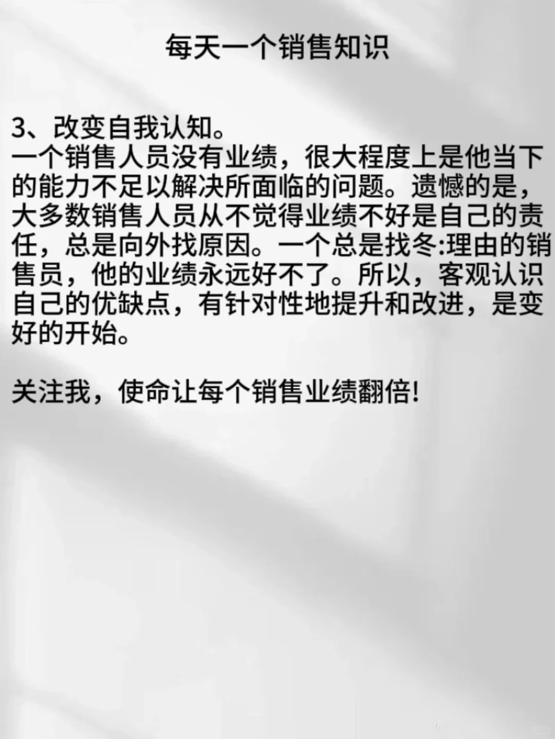 关注我,使命让每个销售业绩翻倍!