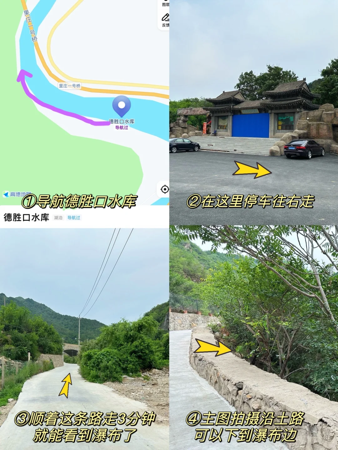 这里是德胜口水库的下游,往上走可以看到超大的水库和湖面,但水库没有开放近距离参观(有一道门锁住了),但是不影响欣赏水库景色。下面就是超壮观的瀑布啦,可以走到瀑布下面近距离感受清凉