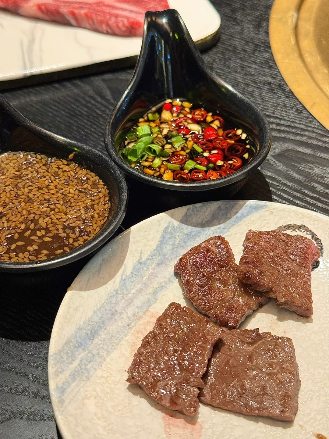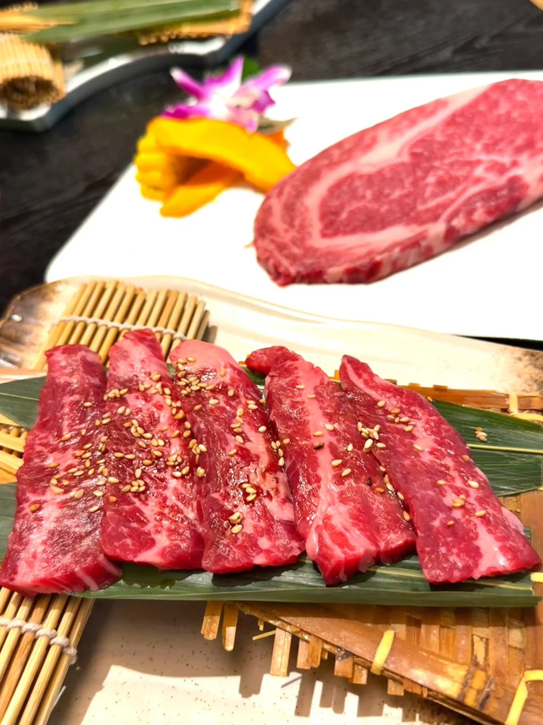 欧洲杯🏆来啦,作为济南人必须要感受一下看球的氛围⚽ 强推万象城二期的虎丸‼️ 全开放式的沿街设计,氛围感一下子拉满💨 比脸还大的特上眼肉🥩,雪花纹路相当好看,肉质嘎嘎好 上等牛小排,油脂丰富,烤至5-7分熟,醇香肥美 还有牛舌、横膈膜、精选M7-M9冰鲜和牛等 搭配多种酱汁,低卡美味,还能体验丰富口感 夸夸贴心帮烤服务,火候控制的刚刚好,把肉的品质完美呈现,超级适合我这个懒人哈哈 📍:万象城聚场二期连廊