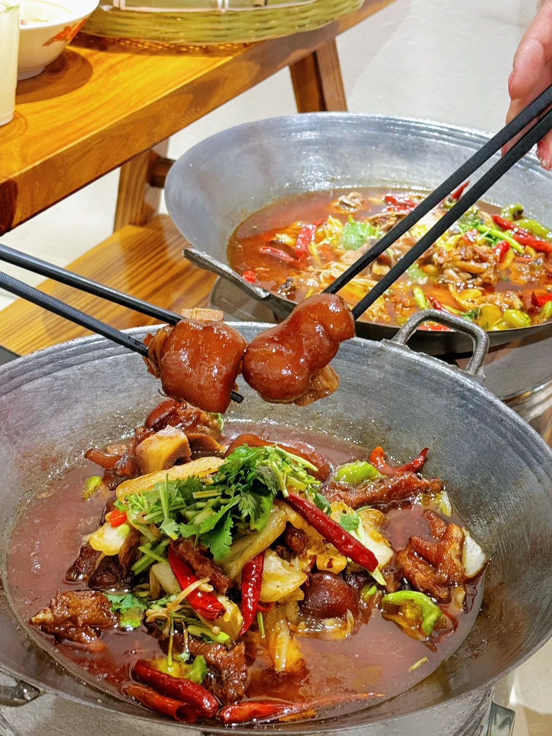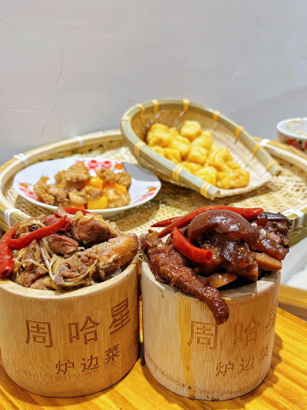 📍没错!就在高新万达金街的周哈星 济南首家炉边菜 墙裂安利给没吃过的小伙伴👏🏻 两个长凳围着炉子 边吃边涮 边喝边聊 主打一个热闹接地气🍻 红烧多汁猪蹄鸡爪锅&爬树鸡锅:猪蹄鸡爪炖的软烂脱骨 鸡肉也很入味 量大实惠 鲜香热辣 搭配竹筒饭 根本停不下来 吃完还可以涮豆皮 娃娃菜 方便面 豆腐泡等 汤底越煮越香🥹🥹 还有湖南浏阳同款蒸菜 尤其是那个蒸蛋 获得一致好评🤤🤤 唯一的缺点就是太费米饭啦!