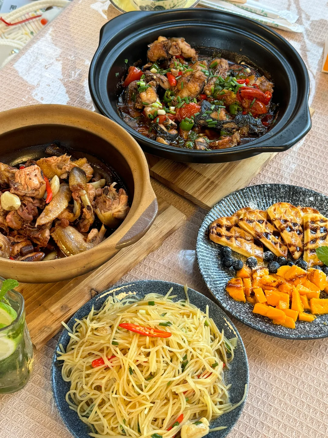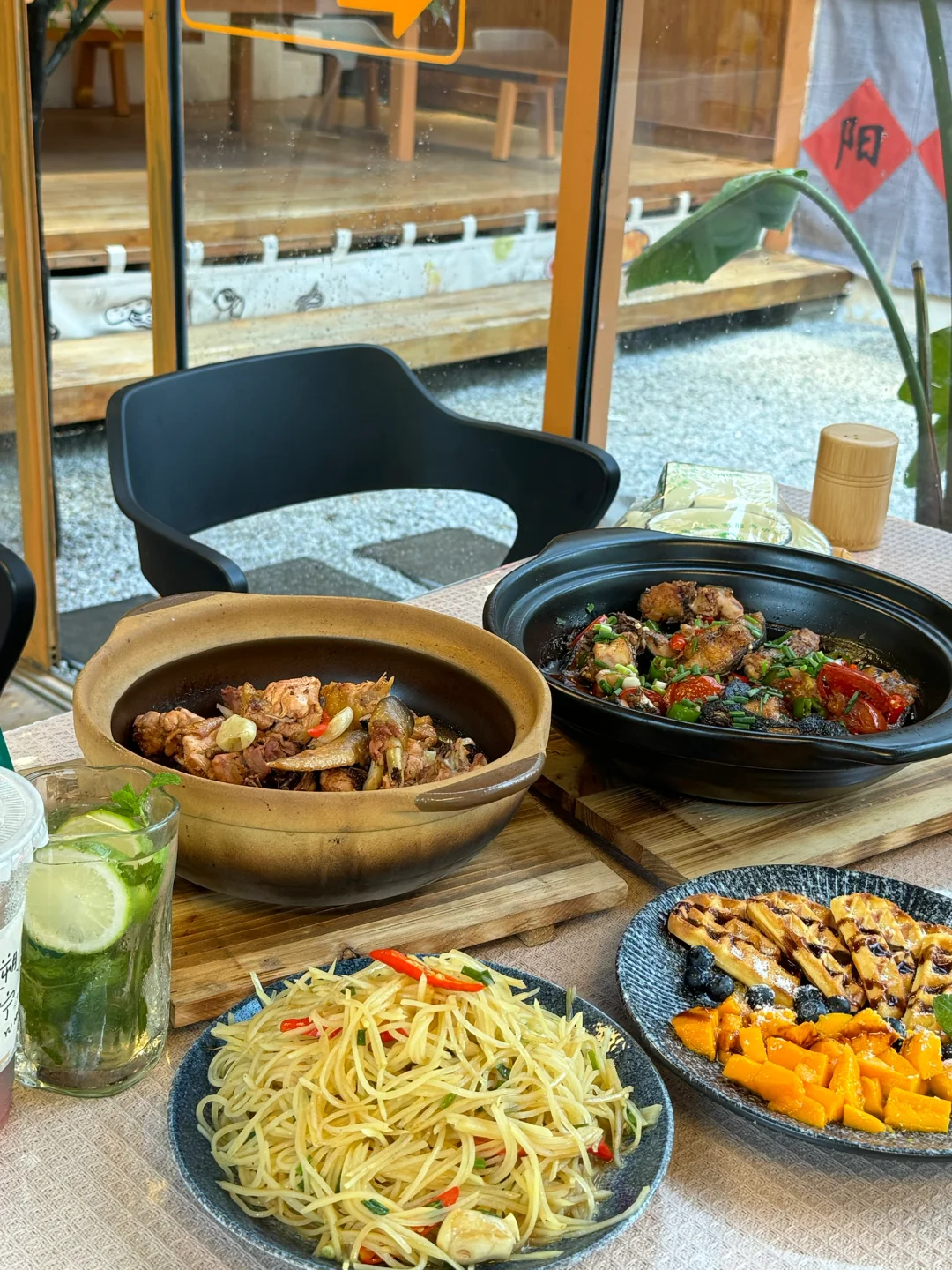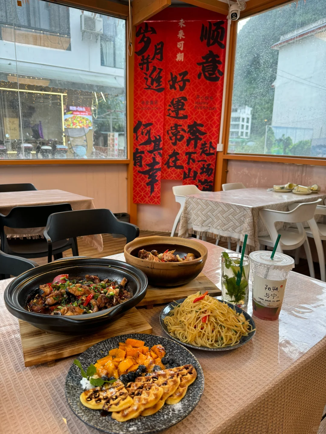 太喜欢这个小院子了 下午坐在这喝杯咖啡☕ 阳光洒下来 懒洋洋的 感觉时间都慢了下来💕 老板是个很佛系的男生 给我们推荐了几道招牌菜 五指毛桃焗鸡:奶香味十足 鸡肉软烂入味 啤酒鱼:来阳朔必吃 辣辣的超过瘾 饮品也炒鸡好喝‼️ 来旅游的宝子们一定要来试试,不会踩雷der😎 📍:与宁私厨