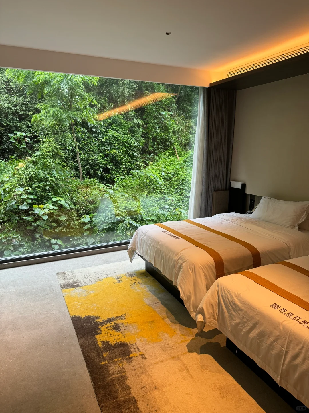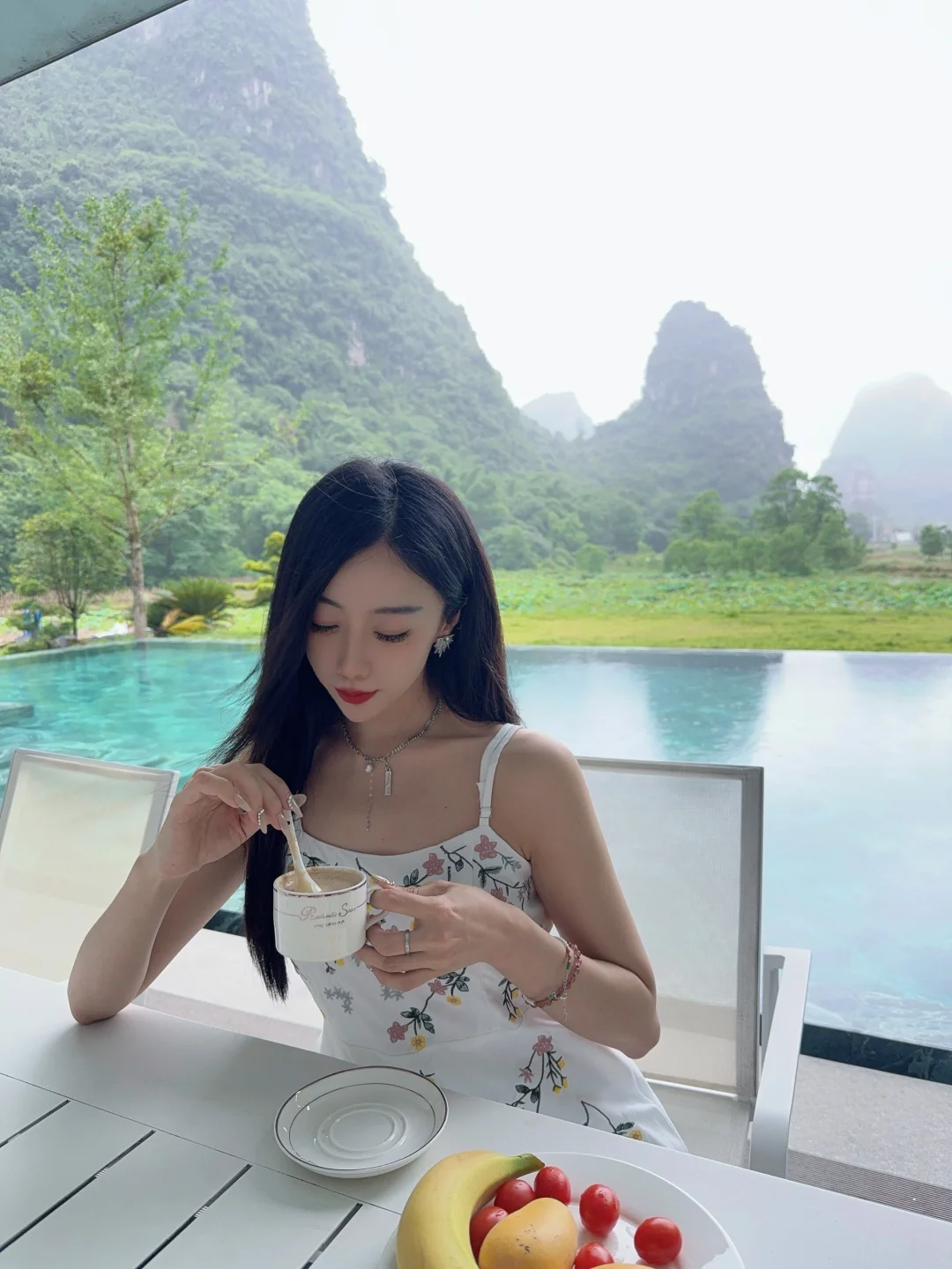终于来天然氧吧—阳朔啦 选了一家超美的酒店,就在千古情景区附近 四季云栖度假酒店☁️依山傍水,仿佛住进了画里⛰️ 一楼一个超大露天泳池 旁边还有荷塘和草地,拍照超出片! 房间都很美,落地窗外就是山,绿意盎然 还有🆓下午茶和早餐,和宵夜银耳羹,简直不要太贴心 住在这儿,身心都好放松😌