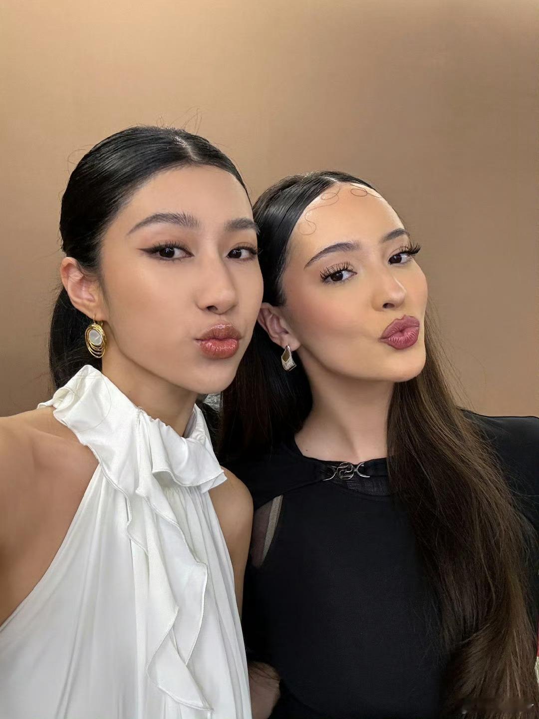 #凡希亚吴映香歌手后台合照#昨晚歌手后台的梦幻联动,凡希亚吴映香嘟嘴同框合照,两