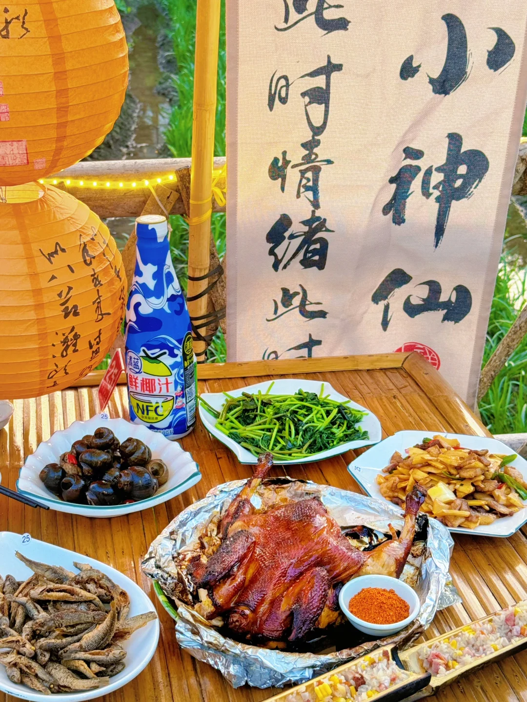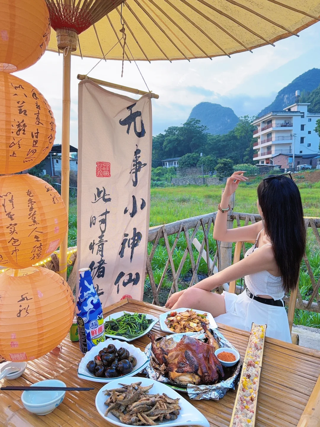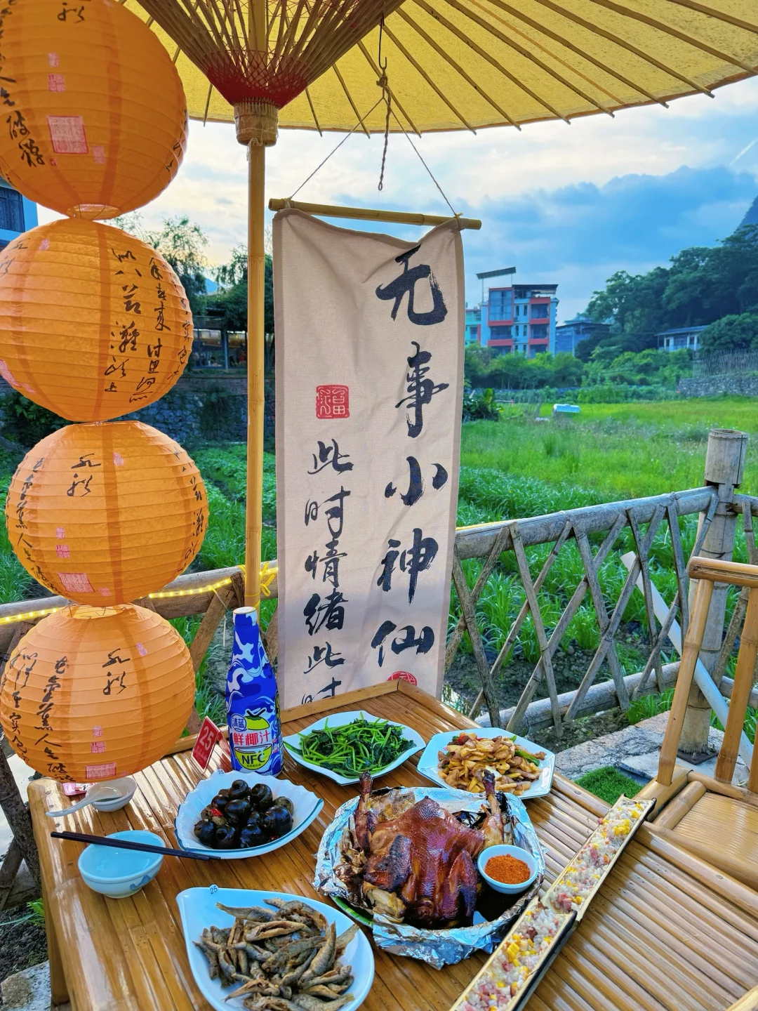 遇龙河边风景绝美的私房菜馆也被我发现啦~ 室外有一大片稻田 坐在田边吃饭 仿佛走进了画里 点了老板力荐的土窑鸡 现烤的 香气扑鼻 还有招牌田螺酿 有淡淡薄荷香 很新奇的口味 清炒地瓜苗也是店里自己种的 天然无公害🥗 随手拍拍都绝美 体验感满分💯