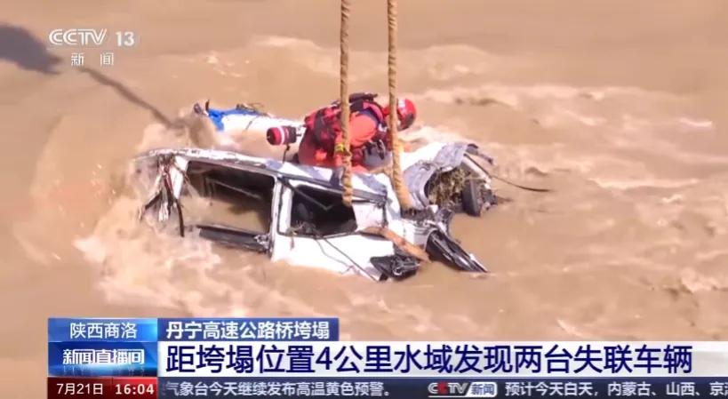 陕西跨桥处4公里以外才发现两台车,车里没有失联人员,车子高空坠下变形比较严重,从事发地一直被冲到了4公里以外的地方,足以可以看出河里面的水有多大。当起重机将河中的两台车拉上来的那一刻,真的是让人泪目了,车子变形成这样,人应该成什么样?希望有奇迹发生。