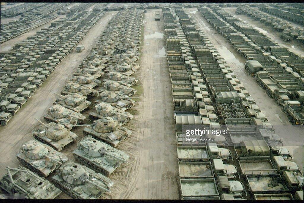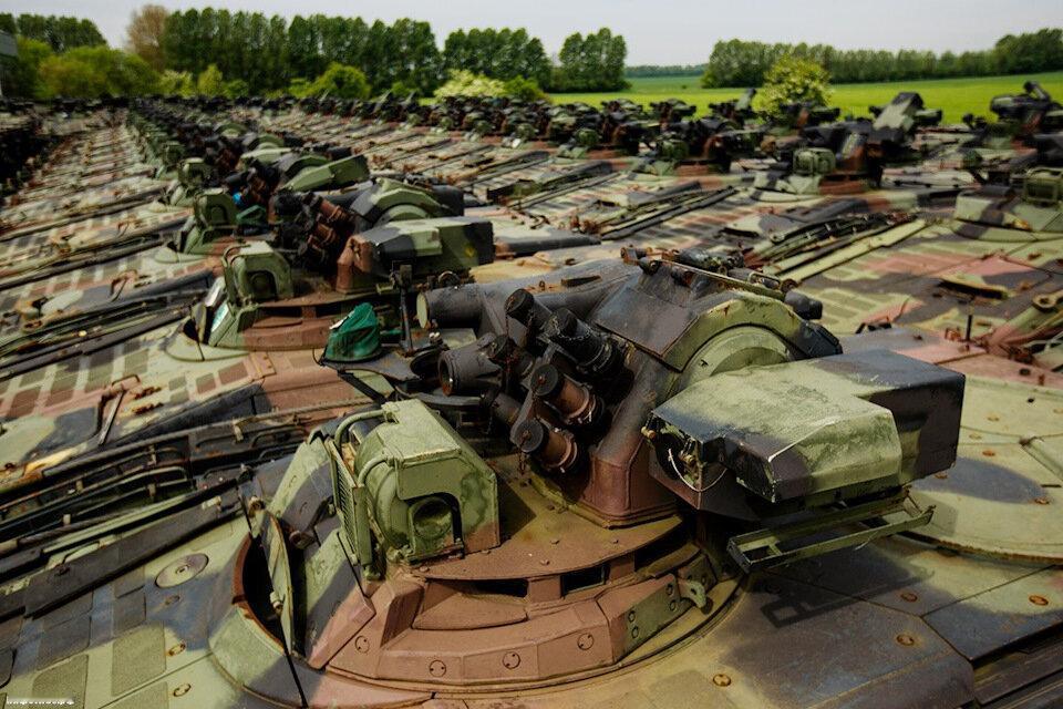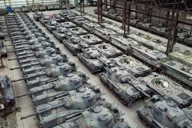 北约军事集团装甲装备的库存基地,或者叫坦克坟场:里边存有美国M-60坦克,德国黄鼠狼步兵战车,豹-1坦克等。和俄军能从远东,西伯利亚地区直接拉出T-54,T-55,T-62,T-72,T-90坦克不同,北约军事集团装甲装备的库存基地比较拉胯,画面中的几千辆,几万辆装甲装备,大部分都无法启动,给钱也真不行,就算给了钱后,德国连100辆黄鼠狼步兵战车都凑不出。封存和解封都是专业性非常强的活,奈何欧洲人的翻新能力太差了,已经被去工业化了恢复是挺难的。这也就是乌克兰军队希望从北约获得的装甲力量,已经达到了极限,因为北约各国手里也没有存货了,启动库存基本不可能实现。