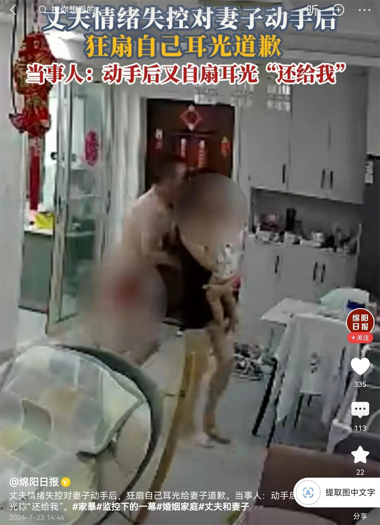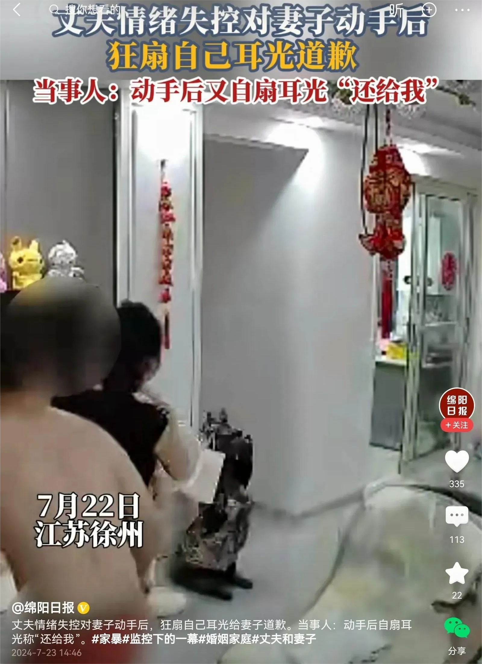 太好玩了,这男子情绪暴躁,打了妻子后又怕妻子不高兴,随手狂扇自己耳光让妻子原谅他。看他跟在妻子身后打自己的样子,感觉可怜又可恨。