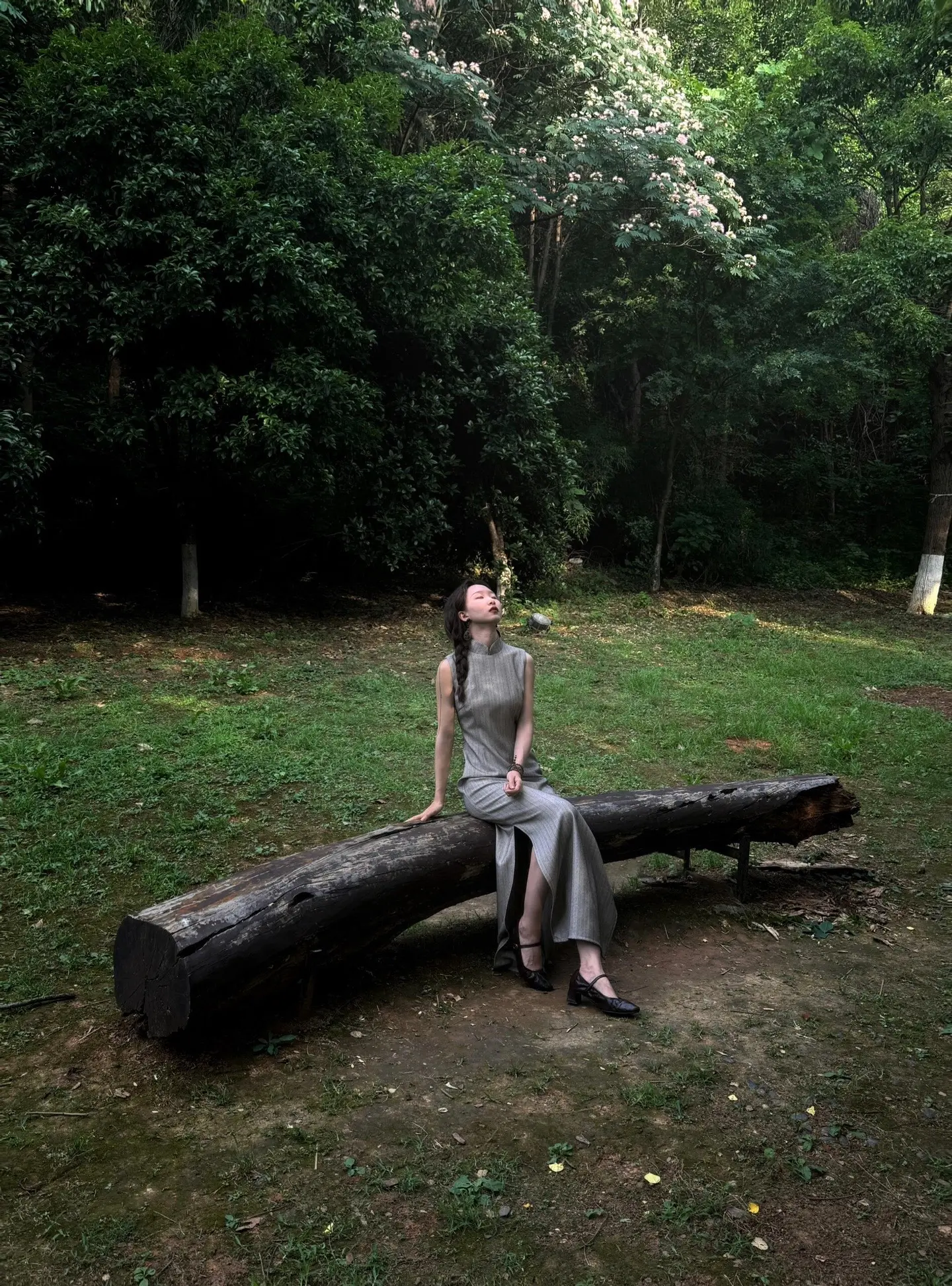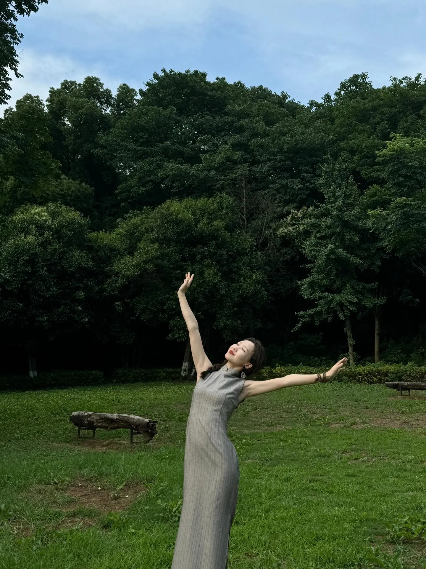 旗袍加公园,绝配哦,是不是打算上演一出民国穿越剧?这波复古潮流,真是紧跟时尚的步伐呀~