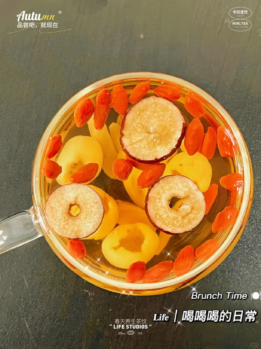 气皿🩸对女生来说真的蛮重要的,肤色暗尘,经期量少,掉发,手脚冰凉!都有可能是气皿不足 几乎天天熬夜,作息不规律还胡吃海喝吃宵夜难免气色不好、暗尘 跟风打卡了这款黄芪桂圆茶! 坚持喝了一个多月后慢慢脸色红润起来,亲身经验! 食材:麦冬+桂圆+黄芪+红枣+枸杞每种各5-8g 做法:食材洗净煮20分钟即可 一周2-3次就好,不建议每天喝!上火的姐妹也慎喝