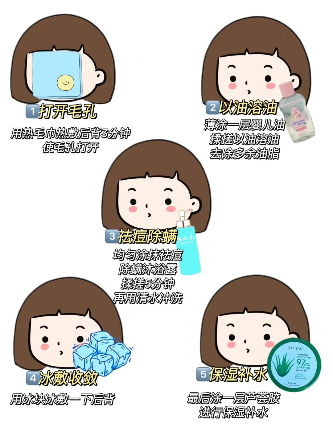 2⃣️涂点婴儿油,以油溶油把后背多余的油脂清理干净