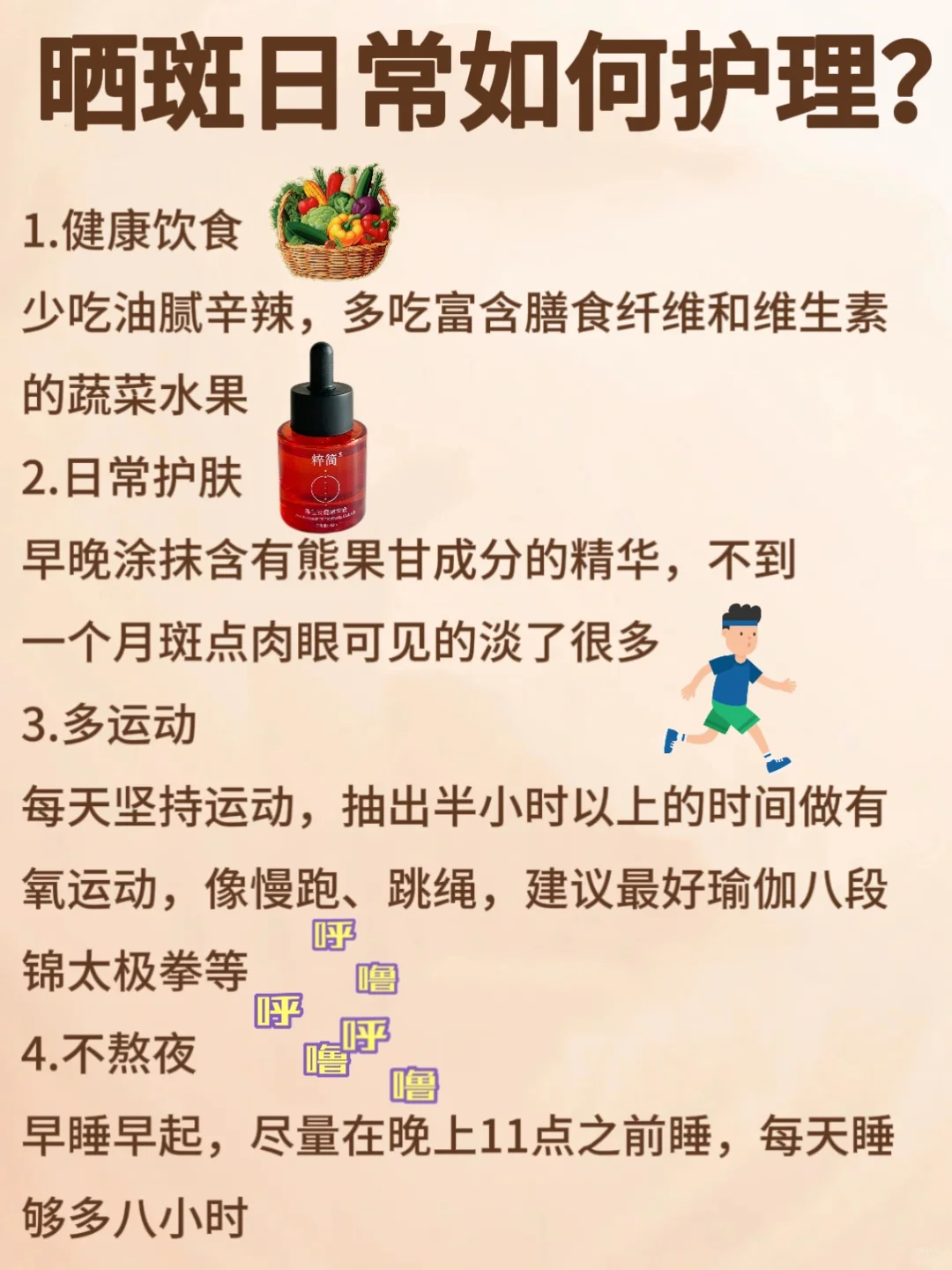 健康的生活习惯+坚持淡斑护理,涂精华,希望大家都能早日淡斑上岸!
