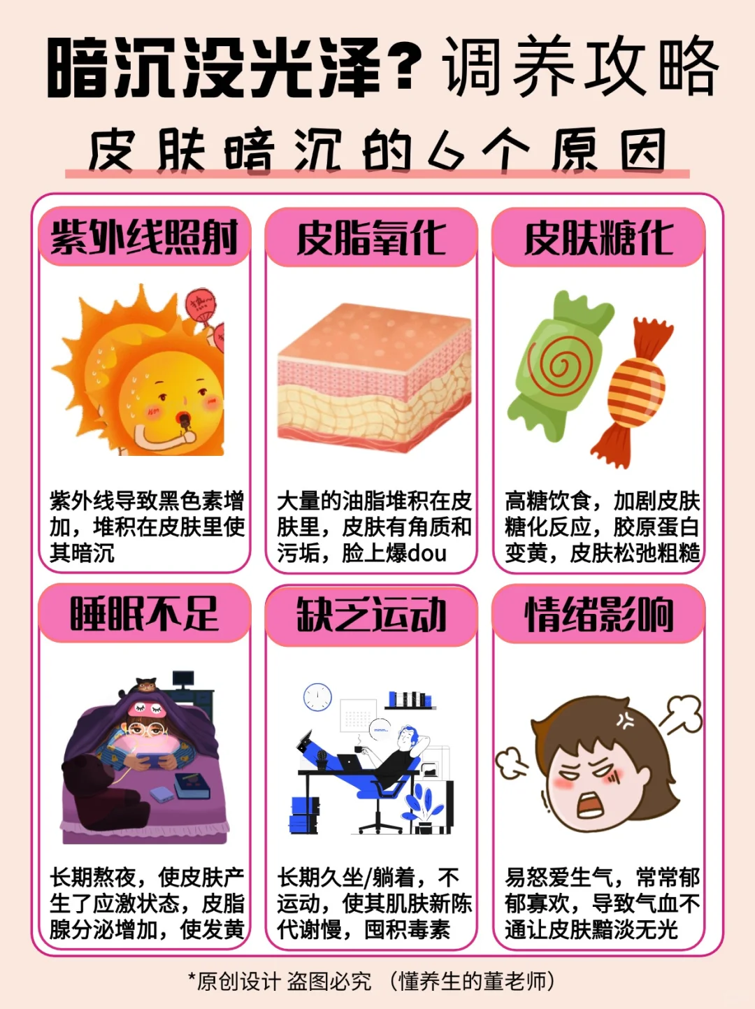 今天给姐妹们分享一下“卡颜局”的逆袭💪 皮肤出现了暗黄、粗糙、泛红...就是我们的噩梦😱 - 而我们想要在“卡颜局”里面脱颖而出✨ 这份养出皮肤好气色攻略收好噜~💌 - 首先我们要了解皮肤暗沉的原因🔍 1⃣紫外线照射☀ 2⃣皮脂氧化💭 3⃣睡眠不足/熬夜💤 4⃣缺乏运动🏃♀ 5⃣情绪影响😔 更多原因请查看图2👀 - 首页也给大家介绍了如何内调外养的方法📚 给大家推荐的Tracel新西兰萃斯天然亮白饮🥤