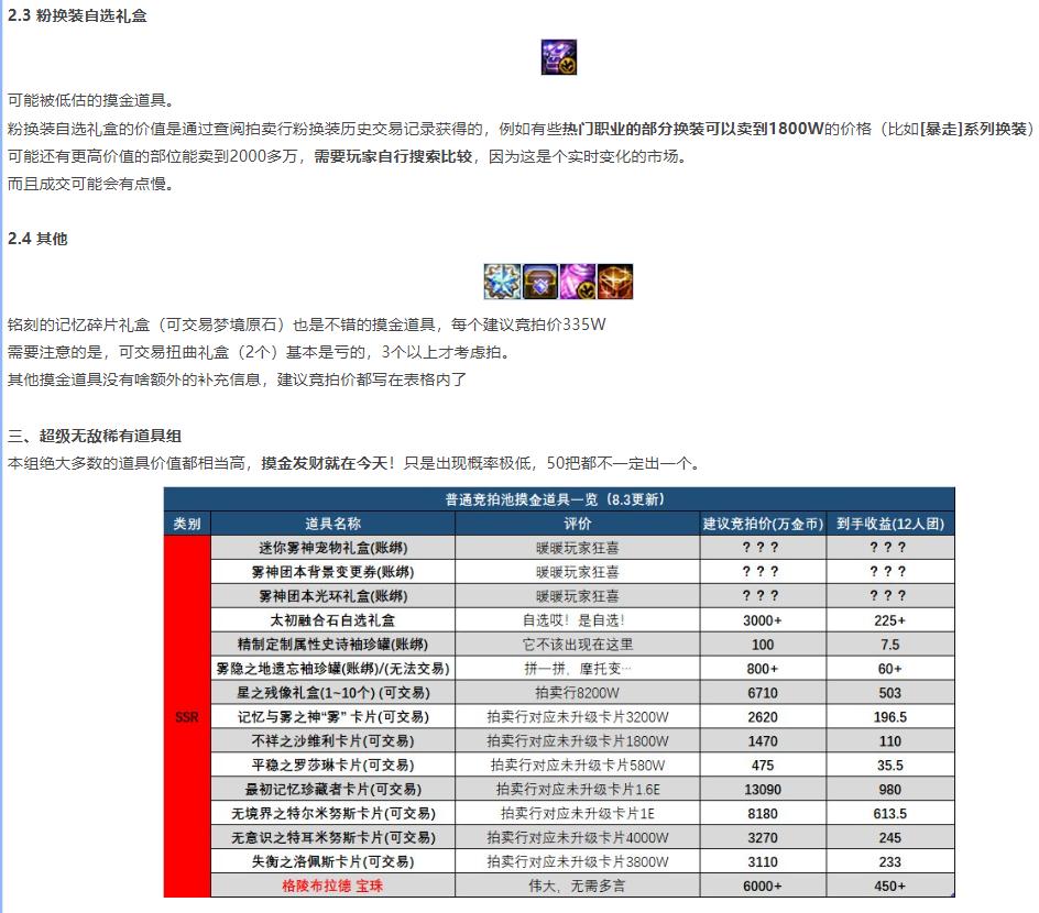 雾神竞拍,摸金有风险,入坑需谨慎,数据分析党来聊聊哪些奖励真正香?