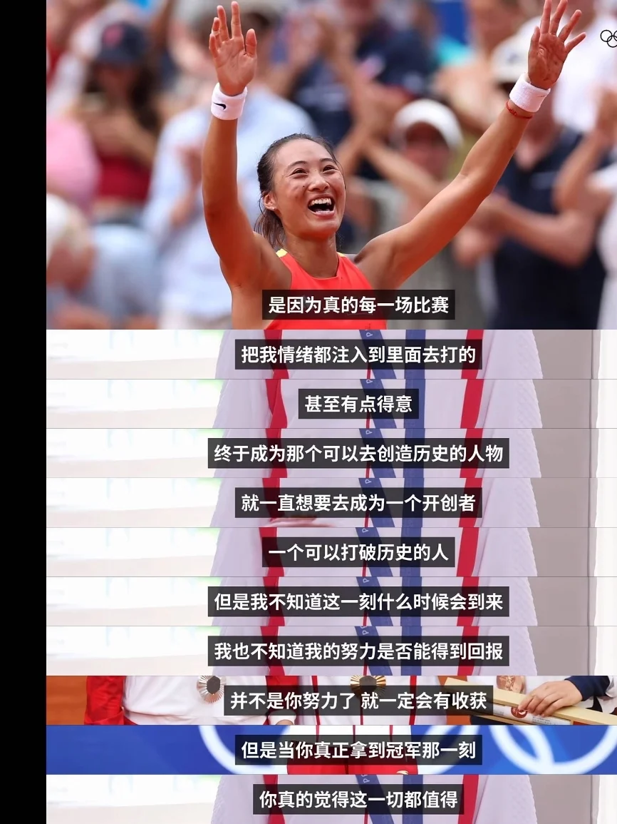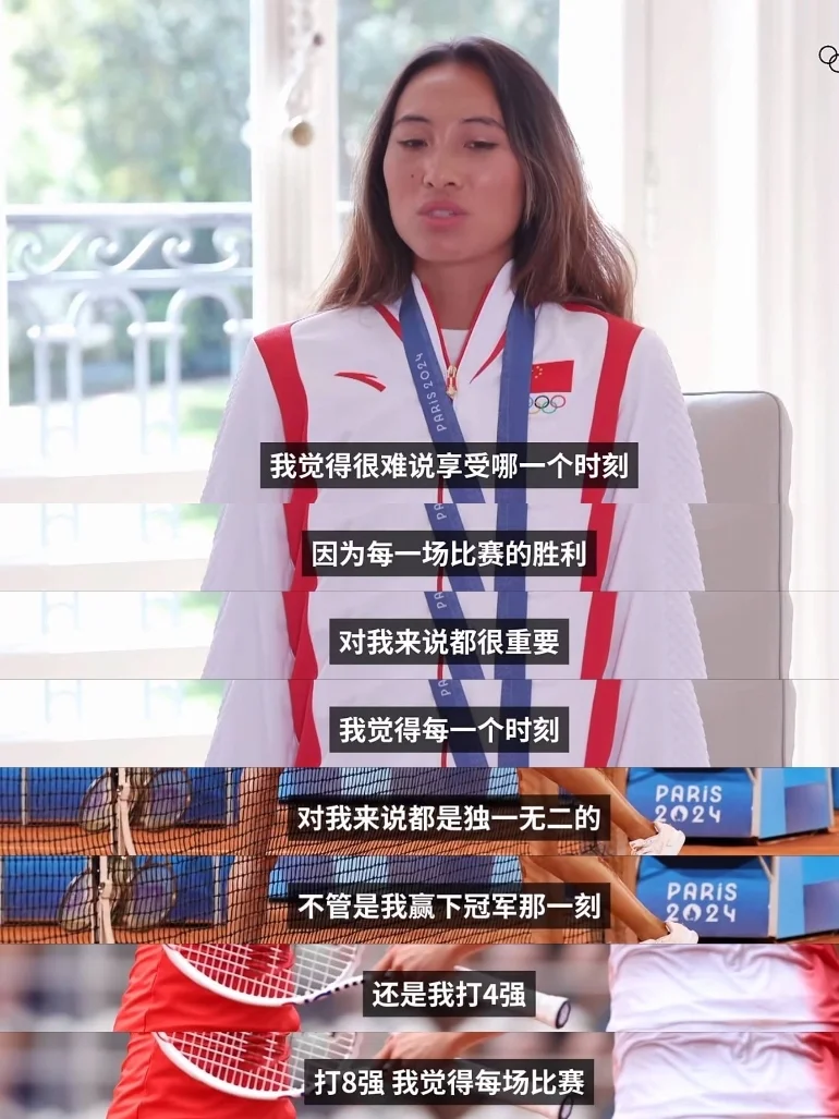 在赛后发布会上,有记者问,之前大家喊你queen wen(文女王),拿到奥运guan军后你觉得这个称呼是不是更好接受了?郑钦文回答:“我在这之前我会谦虚一下,说大家别这么说。但在拿到奥运guan军后,我觉得queen wen这个词怎么说呢,实至名归吧。”