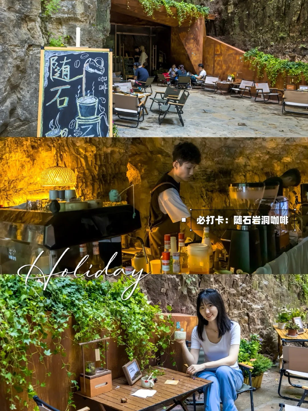 桂花拿铁很好喝,在洞穴阴凉处歇脚很惬意