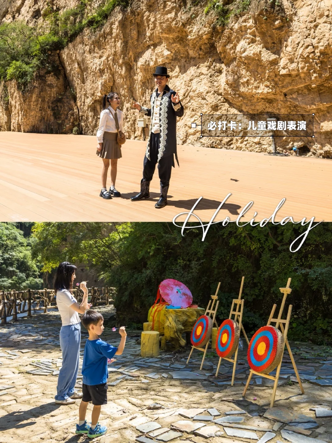 全程18.8km穿行在高山峡谷中🌲有瀑布、溪流、明长城,还有各种峡谷奇观✌🏻峡谷气温凉爽,主路以石板路+木栈道为主,坡度缓。今年新开了很多项目活动,乐趣多多🪘全程摆渡车覆盖,特别适合全家人一起游玩‼️