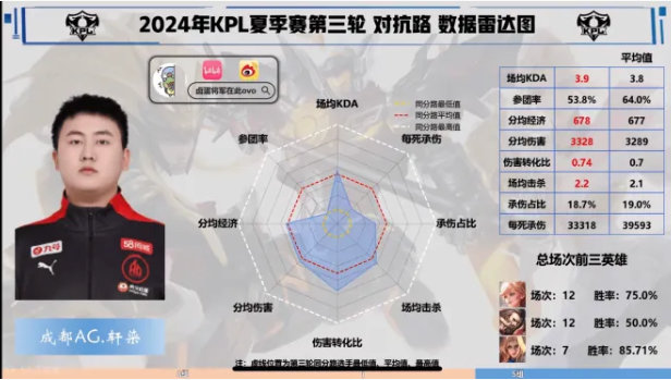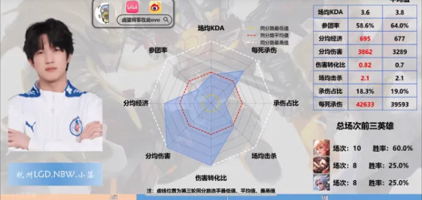 第三轮全对抗路选手数据雷达图:轻语、Fly领跑S组!
