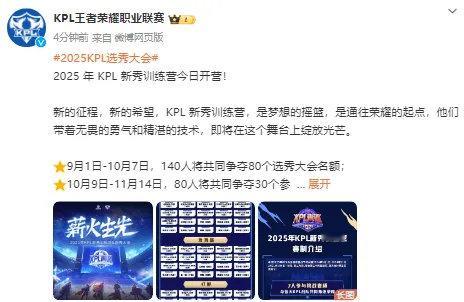 2025年KPL新秀训练营赛制:层层选拔,140人角逐7个挑杯名额