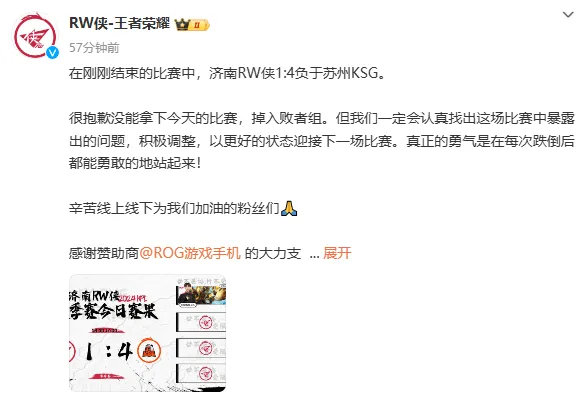 RW侠发文道歉:我们一定会认真找出这场比赛中暴露出的问题