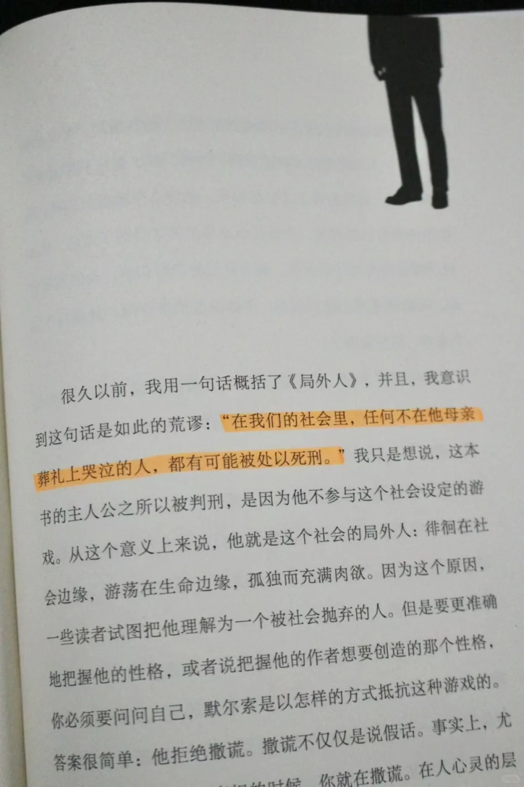 起初看默尔索觉得他很奇怪,与我们认知的世界格格不入;等读了加缪系列作品后,共情了默尔索,世界是世界,我是我,没有对错。