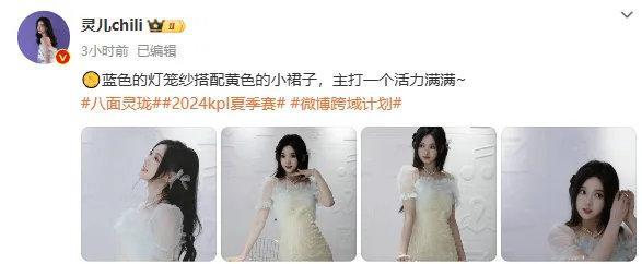 活力满满,灵儿发布写真:蓝色的灯笼纱搭配黄色的小裙子~
