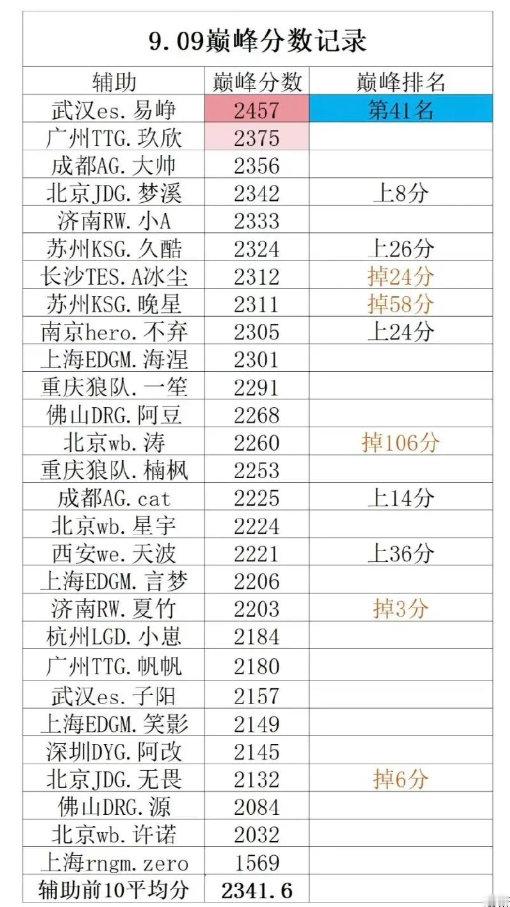 选手巅峰分:易峥稳住游走位榜首,狼队道崽/小涵竞争激烈
