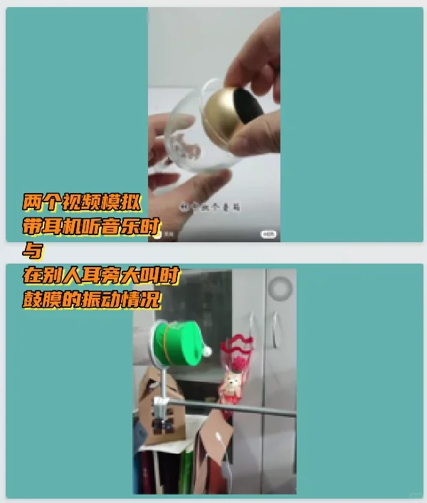 [集美R]在得出“声音越近、越强振动越明显”的结论后,可以类比真实的鼓膜,【什么情况下你的鼓膜会剧烈振动?】,顺便把保护耳朵给拓展了