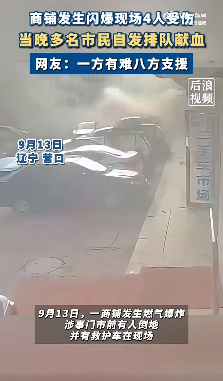 9月13日,辽宁营口一家商铺因燃气爆炸,大量碎片飞溅,导致现场4人受伤。而当天晚上,周边的市民得知急需用血后,都自发排队献血,为生命献出自己的一份力量。