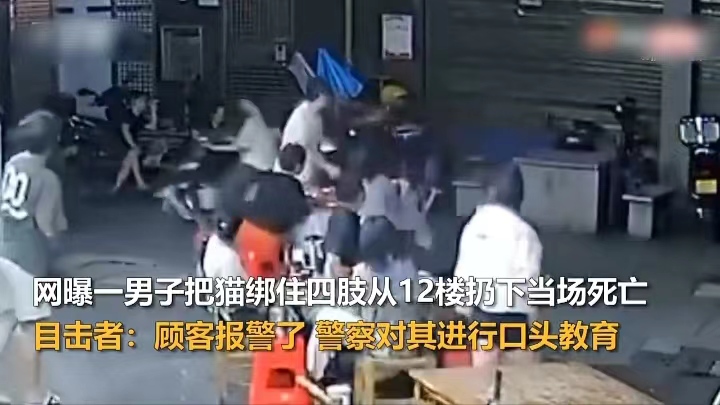 9月16日,湖南株洲一名女子发视频称,自己坐在餐饮店门口休息时,忽然听见啪的一声有东西从楼上掉落,捡起来一看,发现竟是一只四肢被胶带缠住的小猫,由于高空坠落的缘故,导致小猫当场死亡。之后有路人报警,民警找到肇事者是12层住户,对他进行了口头警告。