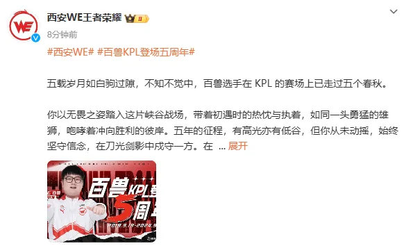 百兽KPL登场五周年,WE发文:高光低谷未动摇,始终坚守信念