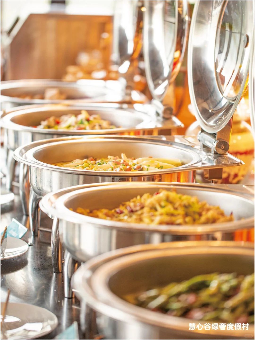 回到度假村,体验一场非遗手工的魅力,亲手制作一份专属纪念品。在茶亭静心抄经📜,让心灵得到彻底的洗礼。傍晚,慧心谷·霞幕餐厅🍽️的佳肴,是味蕾的盛宴,不容错过!