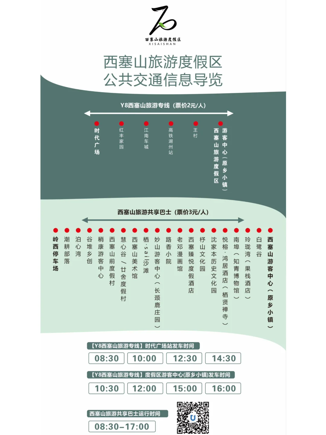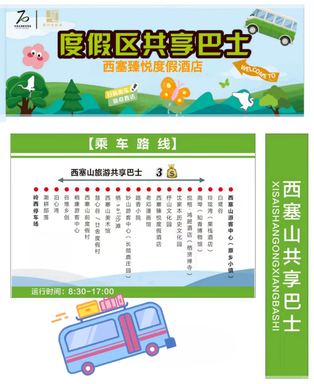 🚌乘车站点:西塞山游客中心(原乡小镇)🏡—白鹭谷—玲珑湾(果栈酒店)—南埠(知青博物馆)🏺—悦榕·鸿居酒店(栖贤禅寺)🛕—沈家本历史文化园—杼山文化园🏞️—西塞臻悦度假酒店—老邓漫画馆💥—路香小院—妙山游客中心(长颈鹿庄园)🦒—栖·sail沙滩🏖️—西塞山美术馆—慧心谷/廿舍度假村—西塞山前度假村🏨—稍康游客中心—谷堆乡创—泊心湾(306营地)🏕️—潮耕部落—岭西停车场🅿️