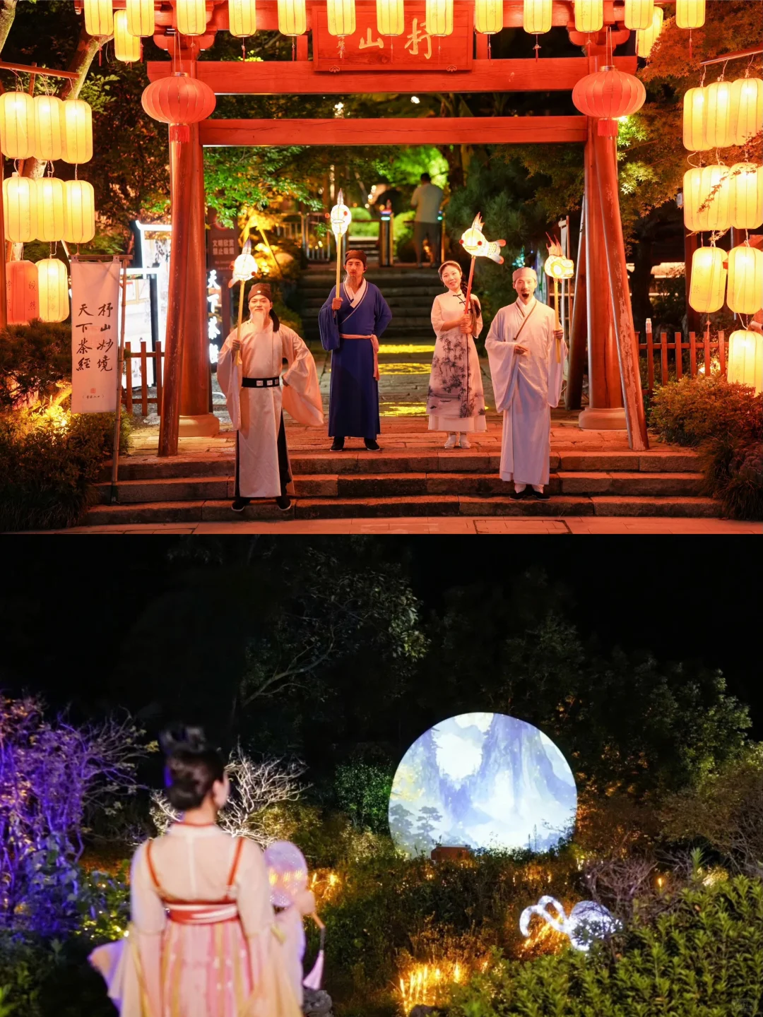 茶经祈福墙前🙏,默默祈愿平安、财富与爱情💖。花灯解谜🏮,诗意盛宴缓缓拉开序幕🎉。