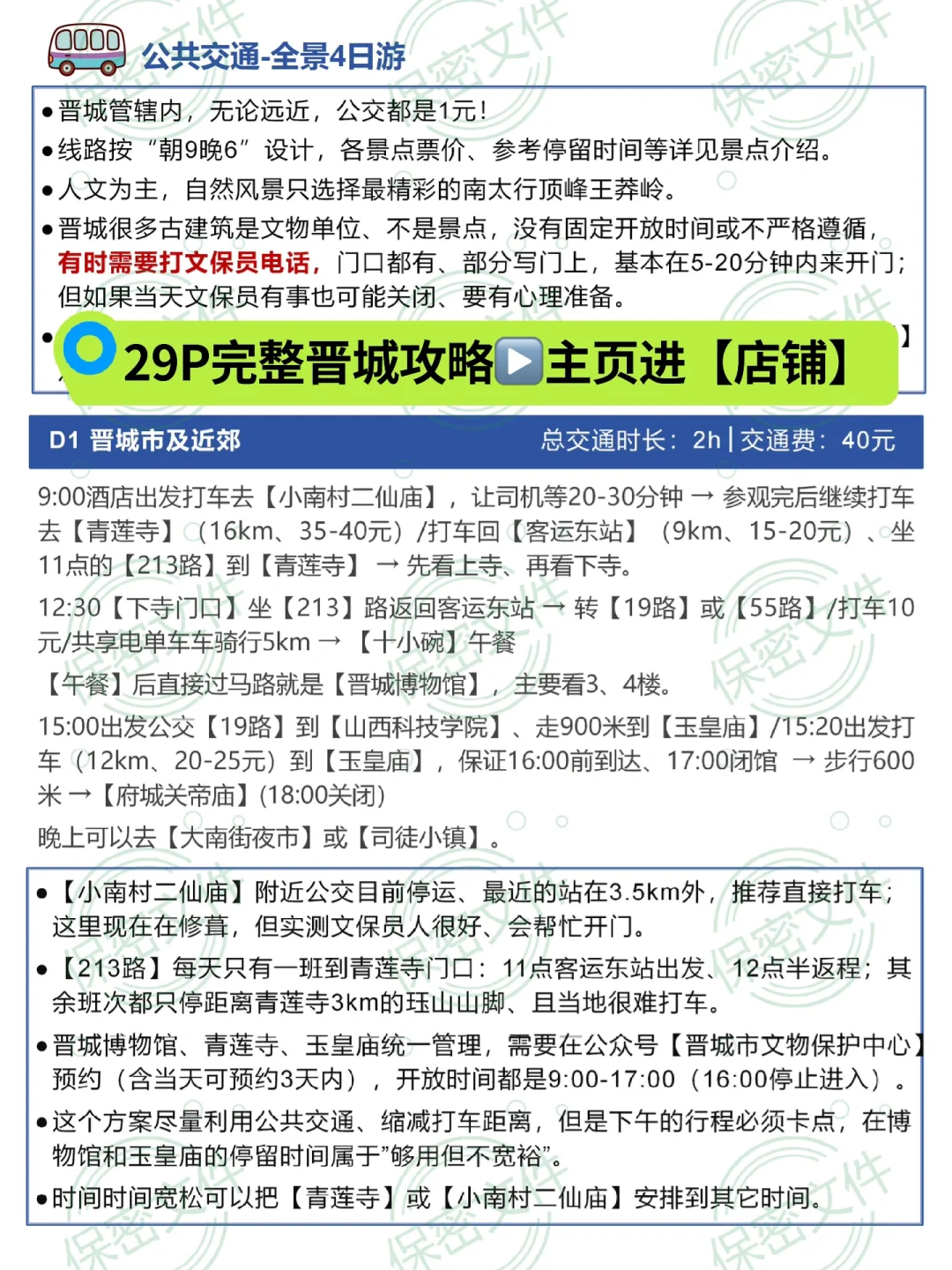 只要属于晋城,无论远近、统一1元,能去到90%景点、包括小众古建(部分需要步行1-3km,图片里的详细版有提醒)。