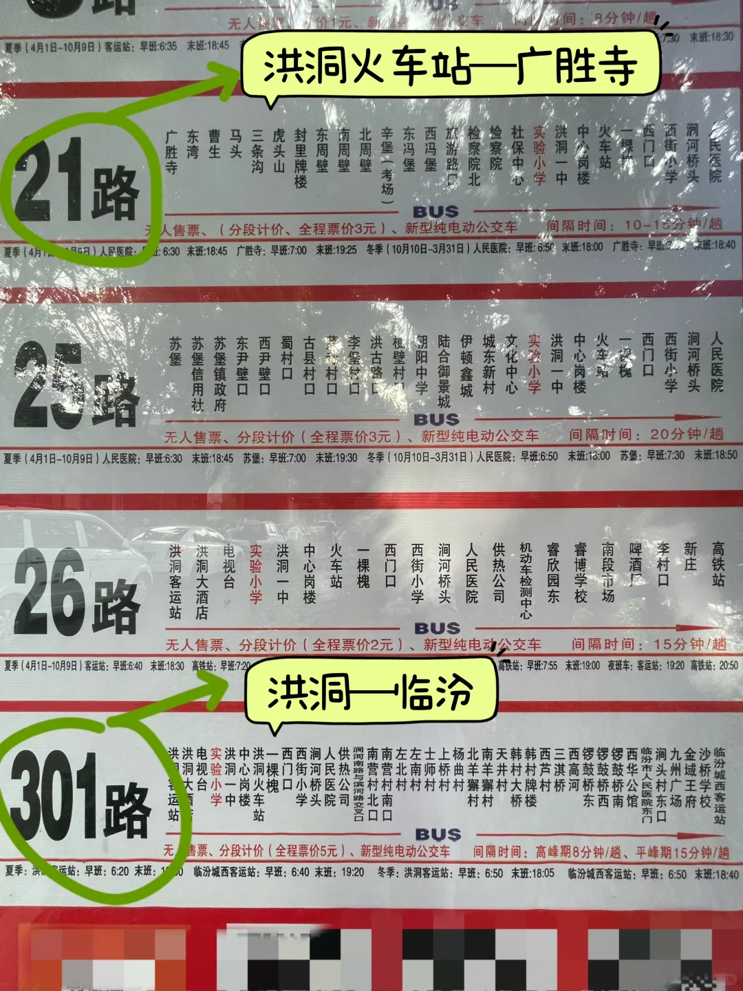 洪洞回临汾301路,末班6:50。