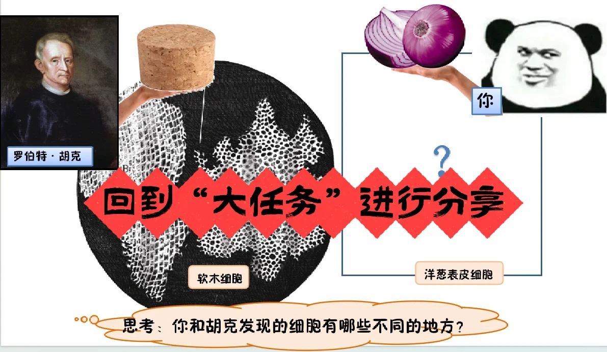 [集美R]提出大任务:观察洋葱表皮,看看有没有和罗伯特胡克的软木细胞一样的【小格子】结构